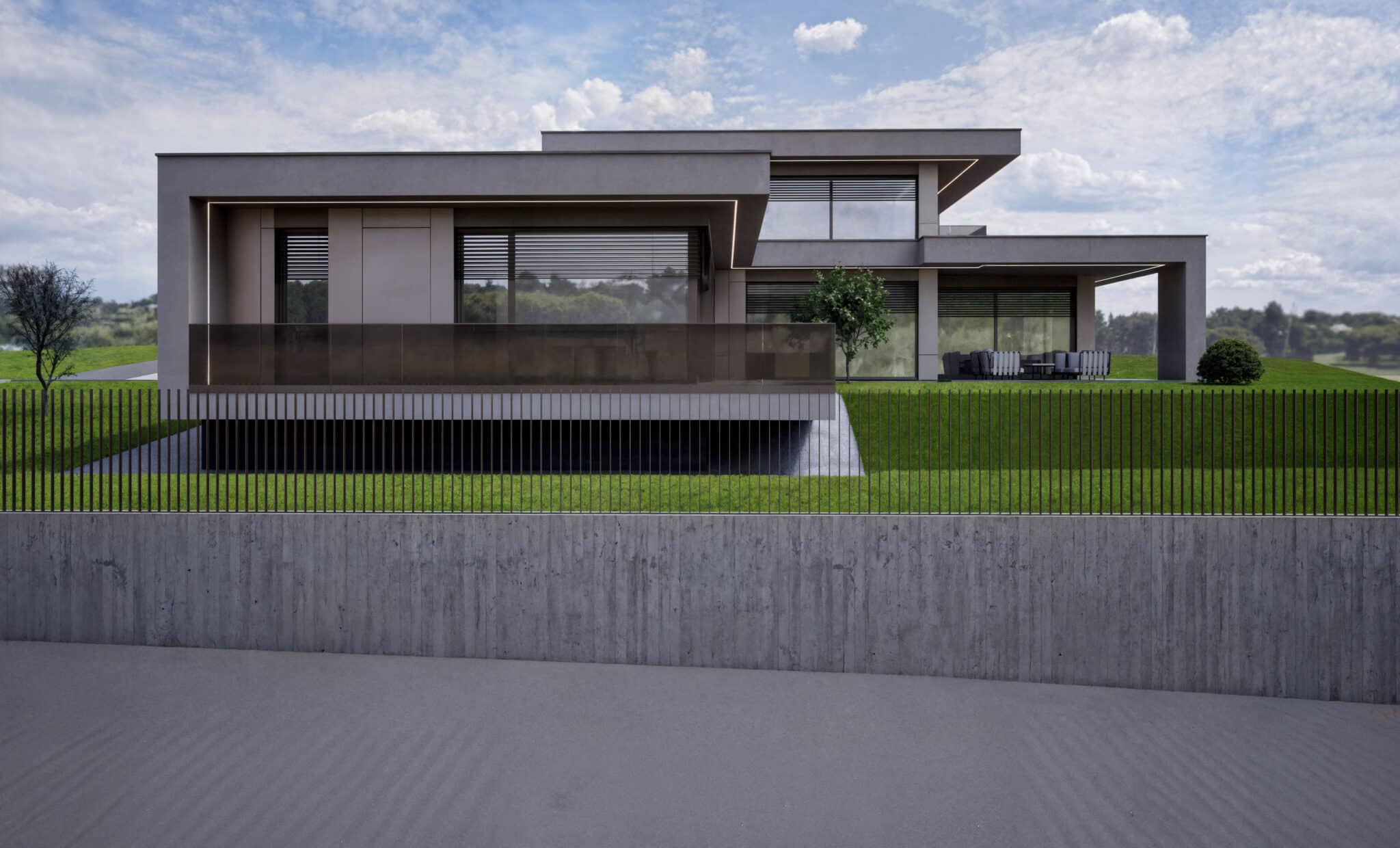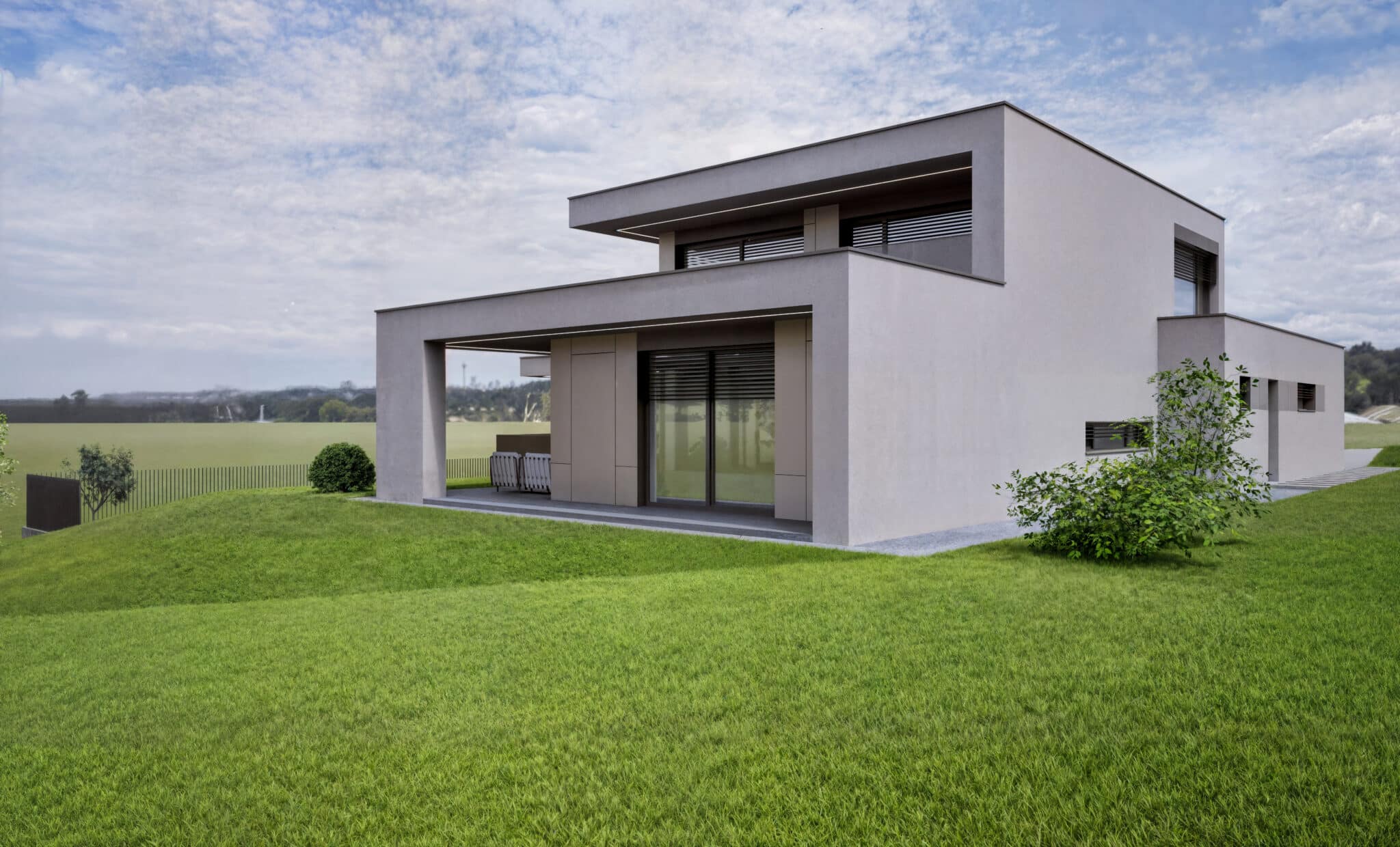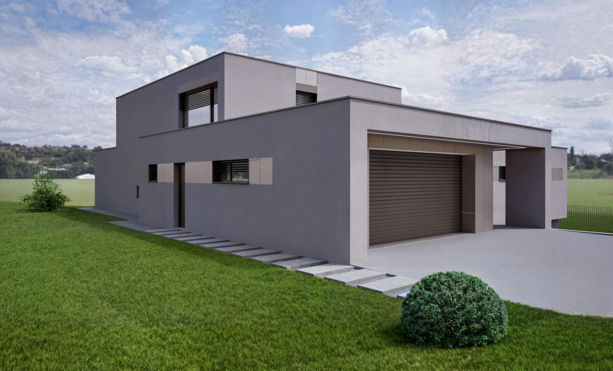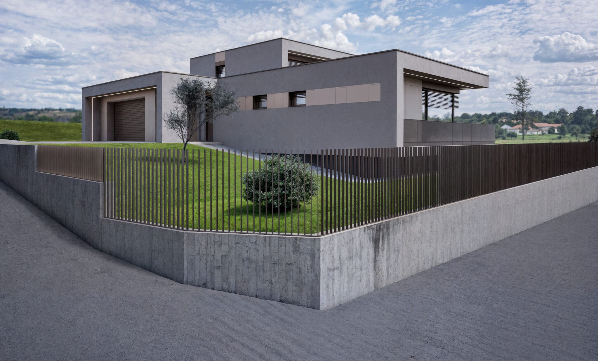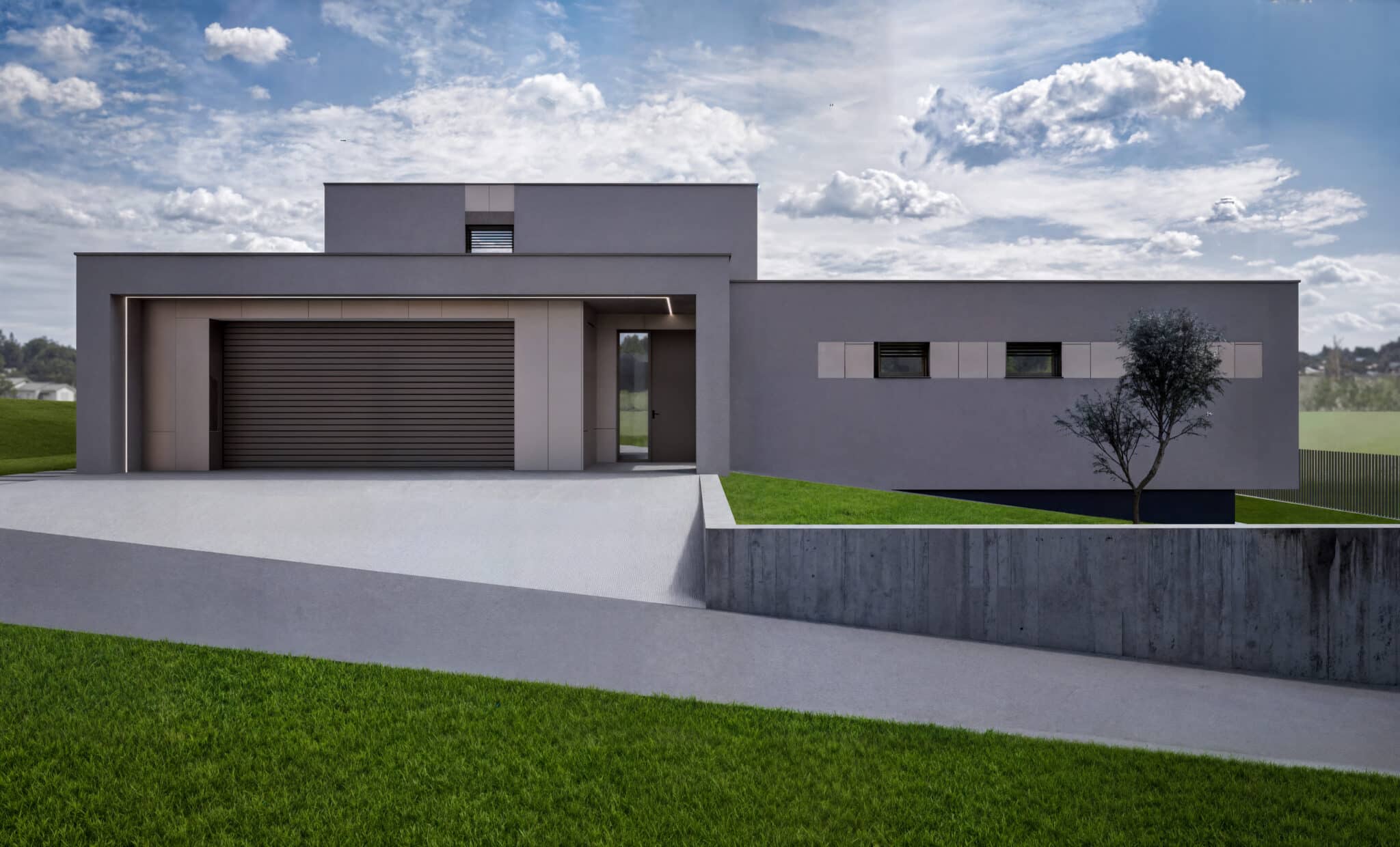 Moderný rodinný dom je osadený do svahovitého pozemku v mestskej časti Ploštín.