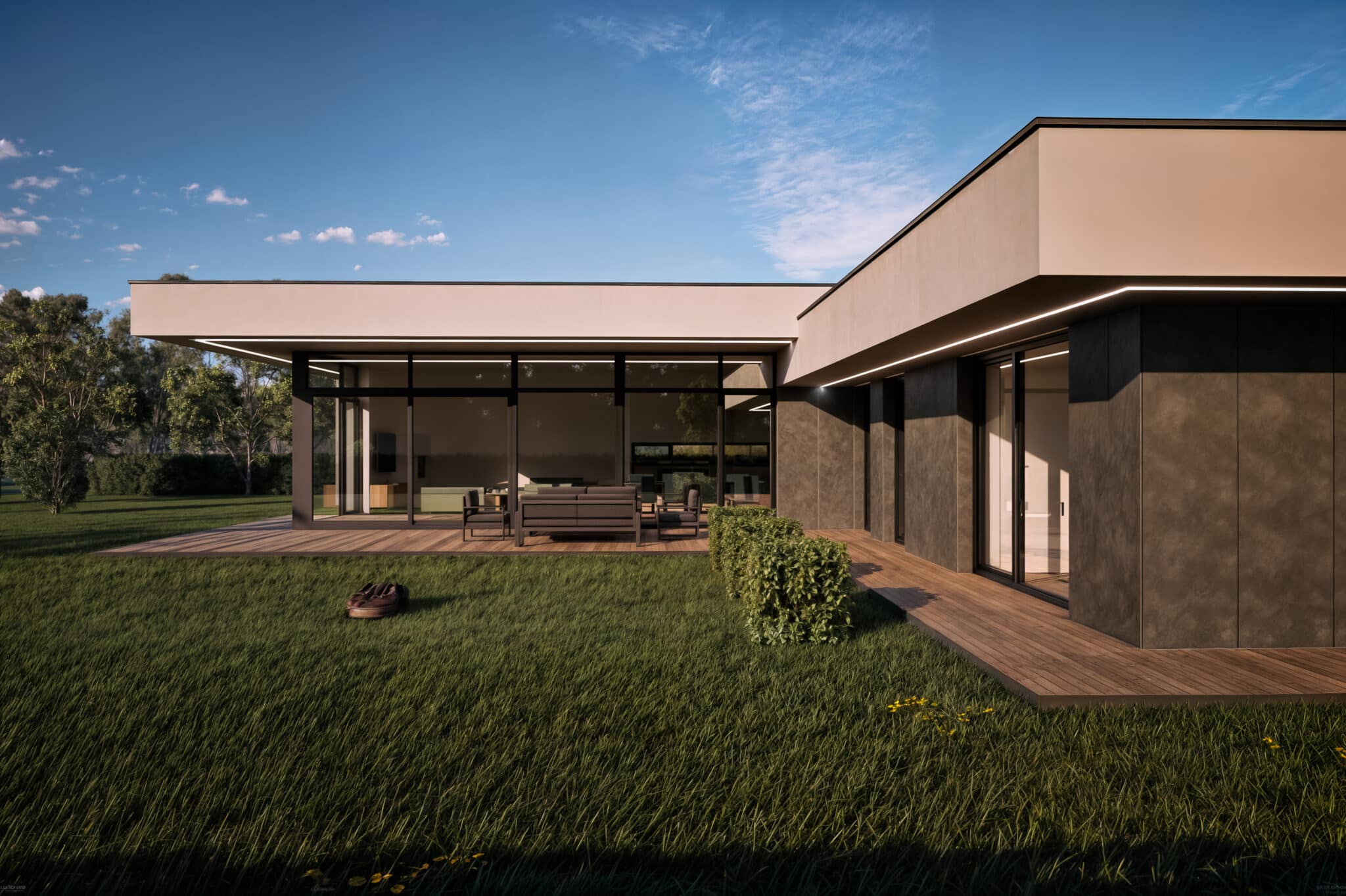 Netradičný bungalov s vysokými stropmi v dennej zóne